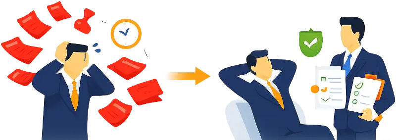 Нет. Большую часть процесса берём на себя: подача, ответы на запросы úřad, отслеживание статуса.